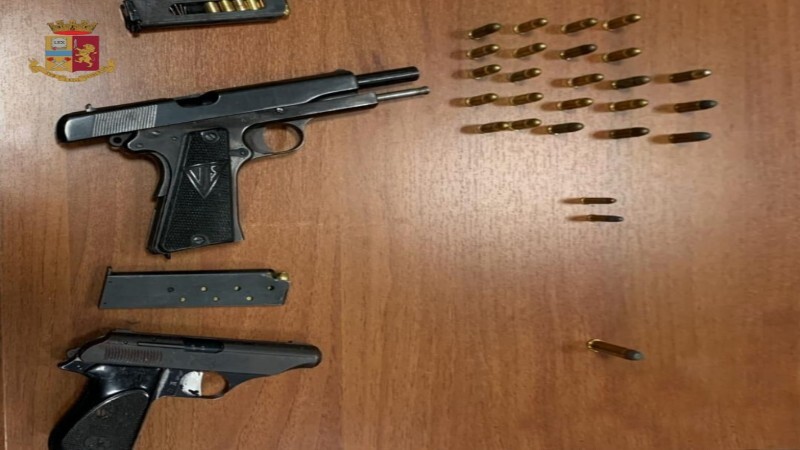 Ieri sera i Falchi del Commissariato San Ferdinando nel transitare in via Santa Maria della Neve hanno notato due persone con indosso caschi integrali che stavano stazionando sulla porta d’ingresso di un’abitazione e li hanno controllati; i poliziotti nel basso hanno sorpreso anche un’altra persona ed hanno trovato una scatola di scarpe con due pistole semiautomatiche, di cui una cal. 9x19 ed una cal. 7x65 con matricola abrasa, entrambe munite di cartucce.