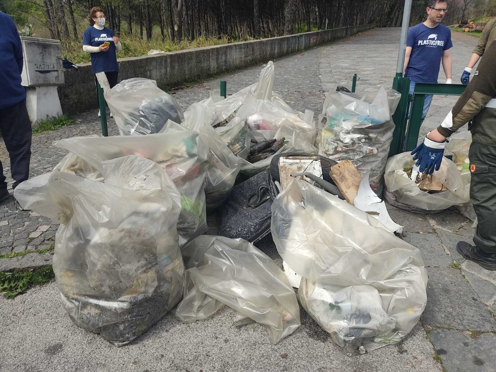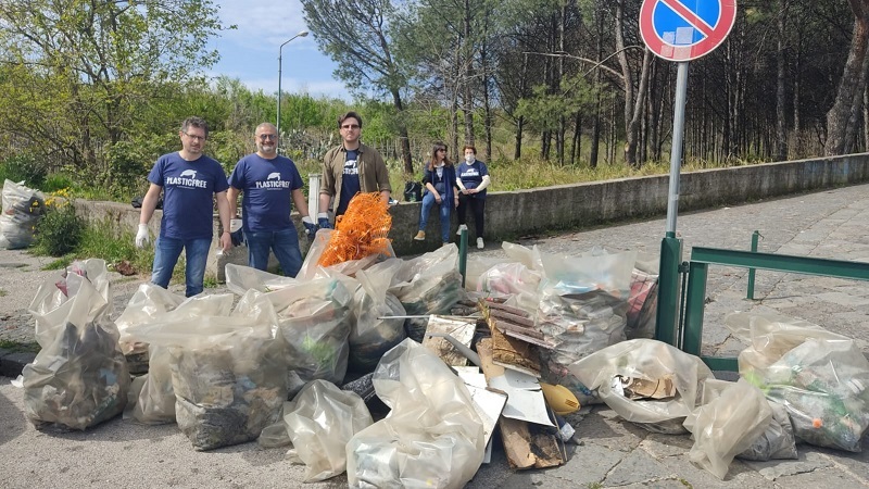 La Pineta di Terzigno nel Parco del Vesuvio torna a splendere grazie all’evento organizzato da Plastic Free, patrocinato dal Comune di Terzigno, in collaborazione con Terzigno Verde, il gruppo locale di Europa Verde guidato da Francesco Servino, e altre associazioni del territorio, in particolare le associazioni Nova, Congeav, Not, Terra della Sport, Forum dei Giovani di Terzigno, Forum dei Giovani di Pompei, Comitato Civitates Pompei. Oltre 70 volontari, tra cui Francesco Emilio Borrelli, Consigliere Regionale di Europa Verde, ed Enzo Vasquez, referente del Sole che Ride, hanno raccolto e differenziato quintali di spazzatura nel Parco Nazionale del Vesuvio, in prossimità del sentiero n. 11 di inaugurato lo scorso 30 marzo. Sono state raccolte decine di buste di rifiuti tra cui migliaia di bottiglie di alcolici e superalcolici, alcune mai aperte e gettate nella pineta. Copertoni di auto, pezzi di auto e anche indumenti.