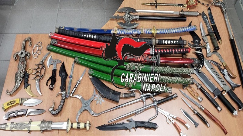 I militari hanno perquisito la sua abitazione ed hanno rinvenuto e sequestrato un vero e proprio arsenale di armi asiatiche. 8 Katana, 23 pugnali, 2 tirapugni, 1 balestra con frecce, 1 ascia animata, 1 shuriken e 2 sai giapponesi le armi che il 39enne deteneva illegalmente.