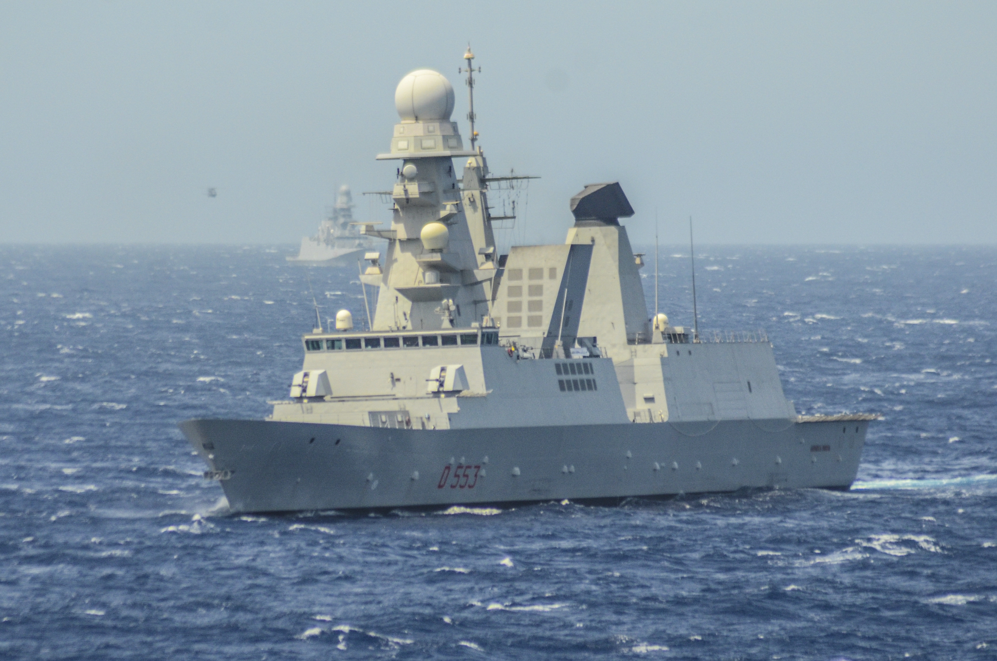 La nave è stata ammirata da numerosi turisti della Stazione Marittima del porto di Napoli, dove è rimasta ormeggiata per una breve sosta operativa di tre giorni. Per l’occasione è stato possibile salire a bordo per una visita guidata da parte degli Ufficiali imbarcati con un equipaggio di 195 persone, fra cui la cortese Giuliana Laguardia, Tenente di Vascello, che hanno fornito tutte le informazioni inerenti l’attività in cui è impegnata l’Unità. La costruzione della nave è iniziata il 19 luglio 2002. Dopo il varo, il primo nel mondo effettuato su carrelli per una nave di dimensioni simili (lunghezza 122 e larghezza 20 mt), avvenuto il 15 ottobre 2005, la nave è stata trasferita grazie ad una enorme chiatta progettata dalla stessa Fincantieri a Muggiano per l'allestimento finale, terminato nel 2007. Il cacciatorpediniere lanciamissili Andrea Doria della Marina Militare è attualmente integrato all’interno dello Standing NATO Maritime Group 2 (SNMG2). La nave “Andrea Doria” fino al 31 dicembre 2022 sarà integrata nella Standing NATO. L’Unità è attualmente inquadrata sotto il Comando tattico di un Ammiraglio della US Navy, assicurando oltre ai compiti specifici assegnati ai gruppi permanenti della NATO, anche la protezione e la scorta ai Gruppi portaerei NATO in transito nel Mediterraneo. In particolare, Nave Andrea Doria ha il compito di fornire costante supporto e protezione al Carrier Strike Group 10, costituito dalla portaerei USS George H. W. Bush, dall’incrociatore classe Ticonderoga Leyte Gulf e dal cacciatorpediniere classe Arleigh Burke USS Truxtun, assolvendo anche compiti di controllo dello spazio aereo e difesa aerea della portaerei, caratteristica questa delle Unità classe Orizzonte che, attraverso le loro capacità multiruolo, sono in grado di versatilità e interoperabilità all’interno di un dispositivo navale. L’Unità è definita “multiruolo” poiché il suo armamento nei confronti di minaccia aerea, di superficie e subacquea la rende particolarmente idonea ad assicurare la protezione di convogli navali e controllo del traffico mercantile. Il Secondo Gruppo Navale permanente della NATO è un gruppo navale multinazionale integrato ed è costituito da assetti aeronavali appartenenti ai Paesi membri dell’Alleanza che operano per contribuire alla sorveglianza e alla sicurezza marittima, per contrastare ogni forma di minaccia. Il task group costituisce una presenza continua e visibile della solidità e coesione dell’Alleanza, garantendo l’assolvimento dei compiti di difesa e deterrenza contro ogni forma di minaccia diretta alla sicurezza collettiva, prevenzione e gestione di scenari di crisi che rientrano nel più ampio nuovo concetto strategico della NATO.