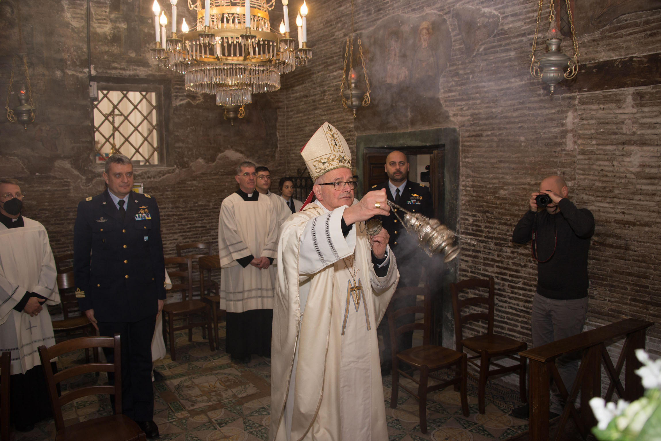 Il personale dei due Enti dell’ Aeronautica Militare, infatti, ha partecipato alle Celebrazioni Giubilari in Cattedrale, all’interno della quale ha visitato la Santa Casa di Loreto, copia perfetta, ma in scala ridotta, di quella marchigiana. Il piccolo sacello fu fortemente voluto da uno dei vescovi storicamente più influenti e munifici di Aversa: monsignor Carlo I Carafa dei Principi di Roccella. Costui di ritorno dalla Germania, dove si era recato nelle vesti di nunzio apostolico per re Ferdinando II, si fermò a Loreto, dove ebbe modo di venerare la Santa Casa. Questa esperienza lo segnò a tal punto da prendere la decisione di erigere nella cattedrale della sua città una copia fedele, ma rimpicciolita di poco, di quel tempietto mariano.