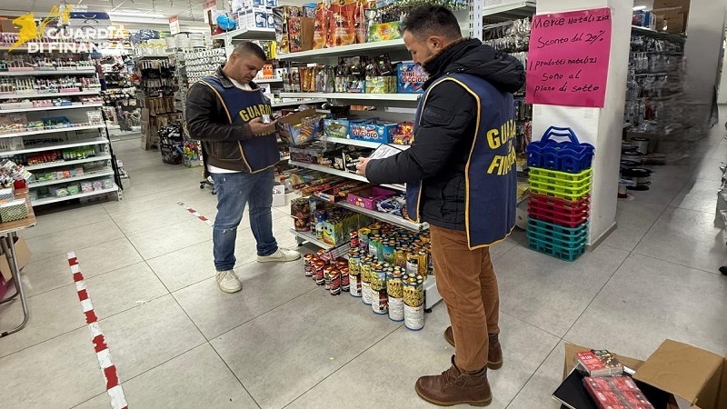 Il suddetto materiale pirico era esposto all’interno degli esercizi commerciali, accumulato in modo sovrapposto in prossimità di altri prodotti infiammabili, addobbi natalizi, materiale plastico e di cancelleria. Alcuni articoli per essere venduti singolarmente erano stati rimossi dalle confezioni originarie che garantivano una protezione adeguata all’innesco fortuito della miccia di accensione.