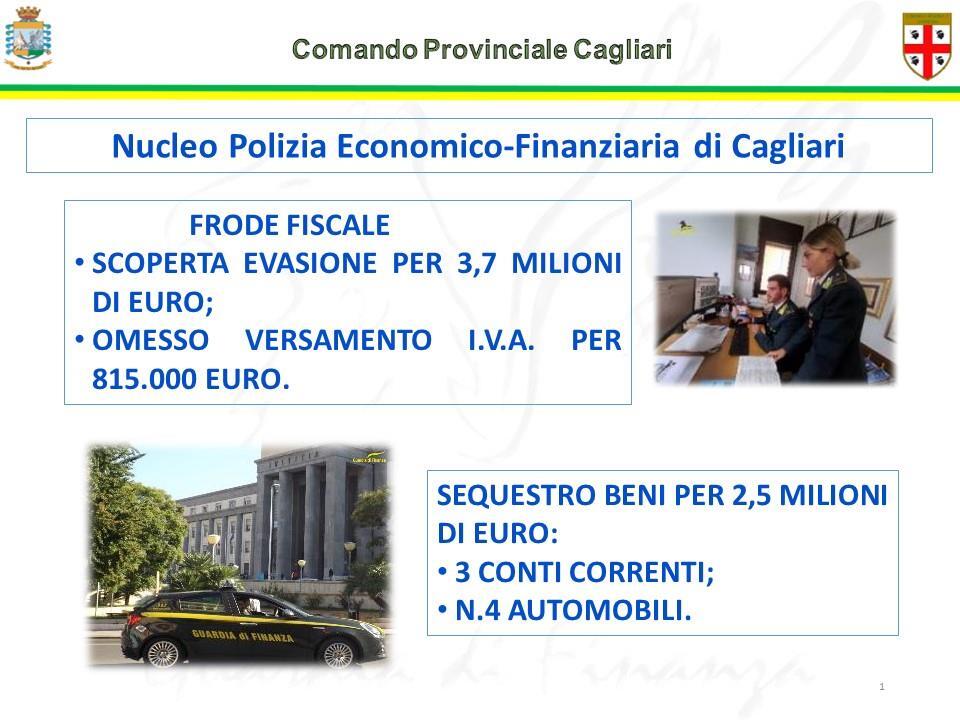 La misura cautelare reale applicata alla società oggetto delle indagini ha permesso di apprendere disponibilità finanziarie su n. 3 conti correnti e di sottoporre a sequestro n. 4 automobili. L’operazione si inquadra in un più ampio quadro di intensificazione delle attività di polizia economico-finanziaria svolta dal Comando Provinciale della Guardia di Finanza di Cagliari e finalizzata al contrasto all’evasione fiscale che costituisce un grave ostacolo allo sviluppo economico perché distorce la concorrenza e l’allocazione delle risorse, mina il rapporto di fiducia tra cittadini e Stato e penalizza l’equità, anche sottraendo spazi di intervento a favore delle fasce sociali più deboli.