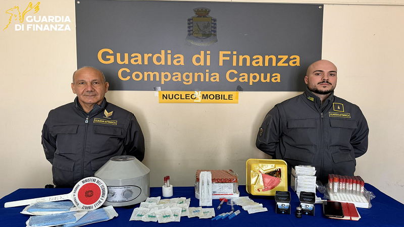 In seguito alla perquisizione domiciliare, disposta dall’Autorità Giudiziaria, i militari operanti hanno rinvenuto e sottoposto a sequestro numerose siringhe e provette per prelievi ematici, sostanze mediche e cosmetiche iniettabili per via sottocutanea, tra cui tossine botuliniche e acido ialuronico, dispositivi medici vari, una centrifuga da laboratorio per la separazione del plasma, un contenitore con rifiuti sanitari e un'agenda con i dettagli delle numerose clienti, prova dell'attività economica non dichiarata.