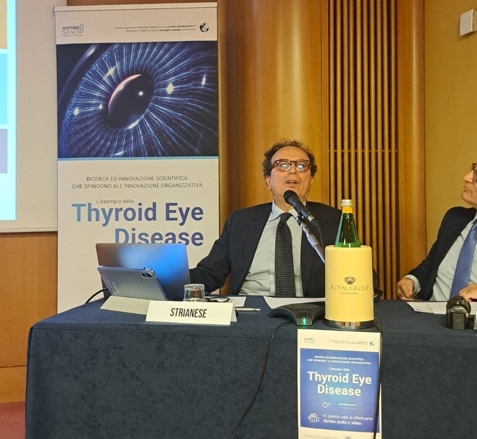 “La malattia oculare tiroidea – ha concluso Colao - è una malattia rara e difficile da approcciare ma oggi esistono approcci clinici nuovi ed efficaci da consolidare e standardizzare” – ha aggiunto Diego Strianese, direttore della Scuola di specializzazione in Oftalmologia della Federico II e responsabile dell’unità dipartimentale di oftalmo-plastica presso lo stesso Ateneo che ha ricordato come siano pochi gli specialisti oculisti in Italia esperti in oculoplastica e la centralità della collaborazione con gli endocrinologici nell’approccio diagnostico e terapeutico alla Malattia oculare tiroidea, rara ma non tanto da trascurare l’impatto devastante che può avere su pazienti e famiglie. “Occorre una gestione integrata – ha ricordato il docente napoletano – molti pazienti sono affetti da questa patologia, accusano una lieve sporgenza degli occhi, fastidi, pruriti, rossori retrazioni palpebrali ma fino a quando la patologia non si aggrava pensano a una congiuntivite, all’occhio secco, girano tra vari specialisti ma non sanno di averla e ciò ritarda spesso di anni la diagnosi che invece deve essere precoce ed accurata e anche i Medici di famiglia devono segnalare ai centri di riferimento i casi sospetti”. La malattia oculare tiroidea (TED -Thyroid eye disease), è una patologia complessa, autoimmune, che colpisce in modo prevalente le donne e può manifestarsi quasi sempre ma non necessariamente in concomitanza di patologie tiroidee (morbo di Badedow e altre forme). E’ considerata rara sulla base del tasso di prevalenza riportato in letteratura di 8,97 casi ogni 10,000 abitanti (fonte Perros et al 2017), che però corrispondono a circa 5 mila pazienti affetti in Campania al netto della sottostima ricordata dagli specialisti riuniti a Napoli. Tra essi Teresio Avitabile presidente della Siso (Società italiana di scienze oftalmologiche) che ha sottolineato la necessità di stilare linee guida per definire i pazienti da reclutare alle nuove cure disponibili con anticorpi monoclonali. Terapie mirate ed efficaci che superano i limiti del cortisone finora usato e della chirurgia, quest’ultima efficace ma invasiva”. “Nuove cure che devono essere accessibili in base a precisi percorsi e approcci multidisciplinari formati da Oculisti, endocrinologi, psicologi, chirurghi, da iniziare a definire e costruire per ora nelle strutture di riferimento, Università, Ospedali e anche nelle Asl – ha aggiunto la professoressa Francesca Simonelli, ordinario di oftalmologia della Vanvitelli protagonista, nei mesi scorsi, insieme al Tigem, dei primi trattamenti al mondo con terapia genica di rare distrofie retiniche ereditarie che conducono a cecità e ora curabili – per poi proporre ai tavoli regionali modelli già collaudati da definire in un Pdta che possa fare da viatico anche alla definizione di linee guida auspicabili a livello nazionale”.