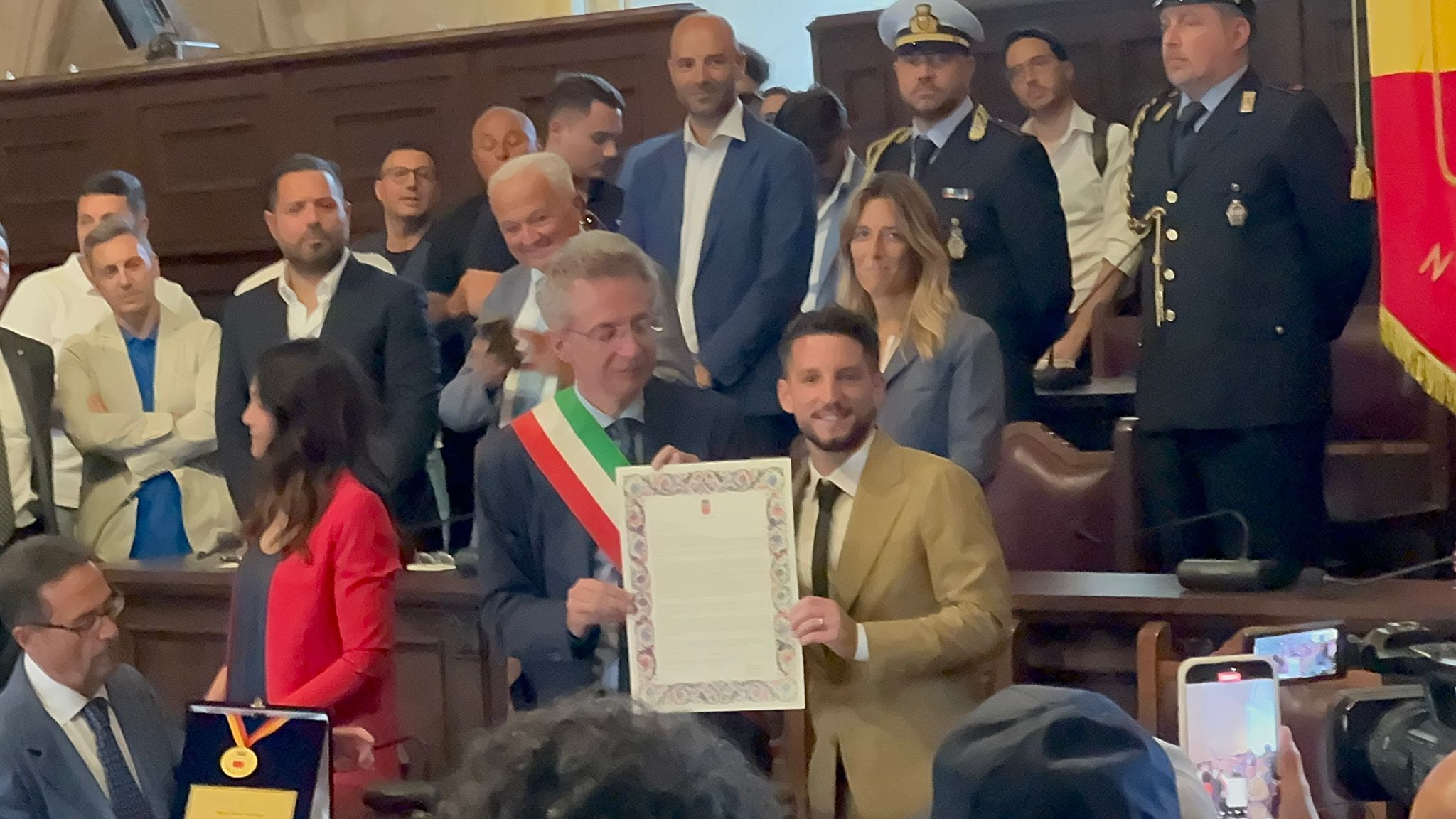 “Oggi non sono qui come calciatore, ma come uomo che si è innamorato di questa città. Chi dice che Napoli è solo caotica, rumorosa e sporca non l’ha mai conosciuta davvero”. Solo un piccolo estratto del discorso di Dries Mertens oggi alla Sala dei Baroni del Maschio Angoino, dove ha ricevuto la cittadinanza onoraria dal sindaco Gaetano Manfredi. Un qualcosa voluto all’unanimità dal consiglio comunale, come ha evidenziato il primo cittadino. Napoli come scelta di vita, perché Dries l’ha conosciuta e non se n’è più separato, almeno con il cuore, tanto da mantenere la casa a Palazzo Donn’Anna nonostante il trasferimento al Galatasaray. Visibilmente emozionato prima di ricevere la pergamena e la targa commemorativa, davanti ai genitori, alla bellissima moglie Kat Kherkhofs e ad un Ciro Romeo più scatenato che mai. “Napoli a vita” ha poi detto a margine la moglie del numero 14, “siamo troppo felici, l’idea è di restare a vivere a Napoli e nostra figlia dovrebbe nascere qui”. Una scelta ben precisa perché il legame tra Mertens e Napoli è indissolubile, a doppio filo. “Il vero paradiso è qua. Le piazze piene di vita, una città che diventa azzurra e gli spaghetti al pomodoro. E poi le persone, i napoletani, che non sono appassionati solo allo stadio. Ma la stessa passione si vede nella vita di tutti i giorni. Qui ho capito che basta davvero poco per essere felici. Questa città mi ha cambiato, dentro e fuori dal campo. Mi ha fatto capire cosa vuol dire sentirsi a casa. Ho dato a mio figlio un nome tipicamente napoletano, così porterà sempre con sé la storia di questa città. Una storia di amore” ha poi aggiunto il centravanti che ha scritto pagine importanti nella storia del club. Basti pensare che trattasi del calciatore con più gol in assoluto nella storia del Napoli, con il numero 14 ancora simbolo di un folletto nato in Belgio solo per uno strano scherzo del destino. Manco a dirlo, una Sala dei Baroni gremita, di giornalisti ma anche e soprattutto di tifosi che hanno provato il tutto per tutto per un selfie oppure un autografo sulla maglietta. E lui, disponibile come sempre, non ha detto a nessuno perché in fondo Ciro è “uomo del popolo”, un napoletano vero. E se lo scudetto non l’ha vinto in campo con la maglia azzurra, gli appartengono di diritto. E con essi anche quello più grande, nella vita, perché la riconoscenza e l’amore dei napoletani per lui, Kat, Ciro Romeo e la futura lady Mertens, beh, si tramanderanno di generazione in generazione.