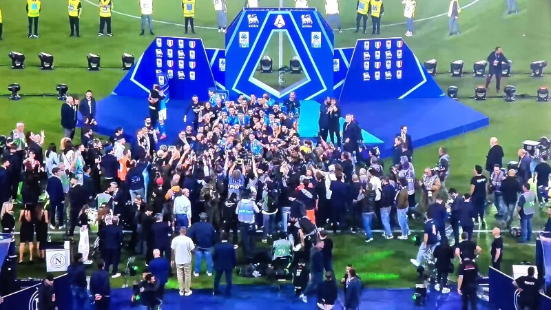 Alle 22,53 La Penna fischia tre volte, il Napoli per la quarta volta nella sua storia conquista il titolo di campione d’Italia e la città si trasforma nella serata di Capodanno o Piedigrotta, fate voi. Fuochi d’artificio strade invase, Piazza Plebiscito gremita tanto che la sicurezza deve chiuderla per raggiunto limite di persone presenti. Ma diciamocelo francamente chi di voi cari lettori avrebbe scommesso venti centesimi (i cinque sono stati eliminati da tempo) non diciamo quest’estate nel corso del ritiro ma subito dopo la pesante sconfitta subita a Verona sul successo in questo campionato? Crediamo nessuno. Questo titolo va in gran parte merito di Antonio Conte. Dopo un anno sabbatico il presidente De Laurentiis è riuscito a convincerlo a portarlo a Napoli e lui si è messo subito al lavoro con tutto il suo staff stravolgendo letteralmente la mentalità dei giocatori rimasti aggiungendo quelli che ha fortemente voluto e non lo hanno tradito. Uno su tutti, Scott McTominay, ha dato la dimostrazione di essere un fuoriclasse. Anche in questa magica serata ha giocato una partita strepitosa e non solo per la rete da incorniciare e passare alla storia del calcio ma anche per il suo contributo a centrocampo e in difesa a dare una mano sulle azioni da fermo. L’allenatore leccese è stato chiaro fin dall’inizio “il nostro obbiettivo è classificarci tra le prime quattro e tornare in Champions League”. Questo è stato il leit motiv dell’intera stagione ma grazie all’incessante e certosino lavoro blindata la difesa con Buongiorno e Rrahmani la squadra da quel passo falso ha inanellato una serie di risultati positivi che l’hanno portata ad issarsi in testa alla classifica e da quel momento è stato duello tra il Napoli e l’Inter fino all’ultima partita di stasera. Un cammino strepitoso, invidiabile che ha stupito tutti. Certo il gioco non è stato spettacolare, molte partite sono state vinte con sofferenze ma gli scudetti si vincono anche così. Contro il Cagliari serviva solo ed esclusivamente la vittoria e la squadra è entrata in campo con grande determinazione sfiorando il vantaggio al 5’ con un gran diagonale di Raspadori. Sullo slancio il Napoli confezionava altre quattro occasioni con Spinazzola, Di Lorenzo, Rrahmani e Lukaku, ma niente da fare i rossoblù riuscivano in qualche modo a cavarsela. La squadra di Nicola, come aveva promesso, ha affrontato la partita con aggressività chiudendosi nella propria area e cercando il colpaccio in contropiede. Intanto l’Inter andava in vantaggio sul Como ma dalla panchina non veniva dato ai giocatori in campo nessuna notizia. Insomma il Napoli premeva ma il goal non arrivava finchè…. Finchè sulla ribalta saliva il fuoriclasse vale a dire quel giocatore, quell’atleta capace con quel tocco in più rispetto agli altri di capovolgere una partita, un evento sportivo. Correva il 42’ e dalla destra Politano spediva nell’area rossoblù un cross sul pallone si avventava Scott McTominay che con una spettacolare rovesciata sboccava il risultato. Bolgia sugli spalti del Maradona. Nella ripresa il Napoli andava a caccia del raddoppio e lo trovava al 63’ quando un lungo lancio di Rrahmani raggiungeva Lukaku a centrocampo, il belga si liberava del suo marcatore filava verso la porta rossoblù e dopo aver mandato a vuoto un difensore infilava la porta del Cagliari. Da questo momento in poi in campo solo ed esclusivamente gli azzurri che con Neres, per due volte e con Lukaku sfiorava la terza rete. E poi il trionfo ampiamente meritato. Ed ora da domani si comincerà a pensare alla prossima stagione, si fanno già grandi nomi: De Bruyne, David, ma è fondamentale la permanenza di Antonio. Resta qui Antonio!