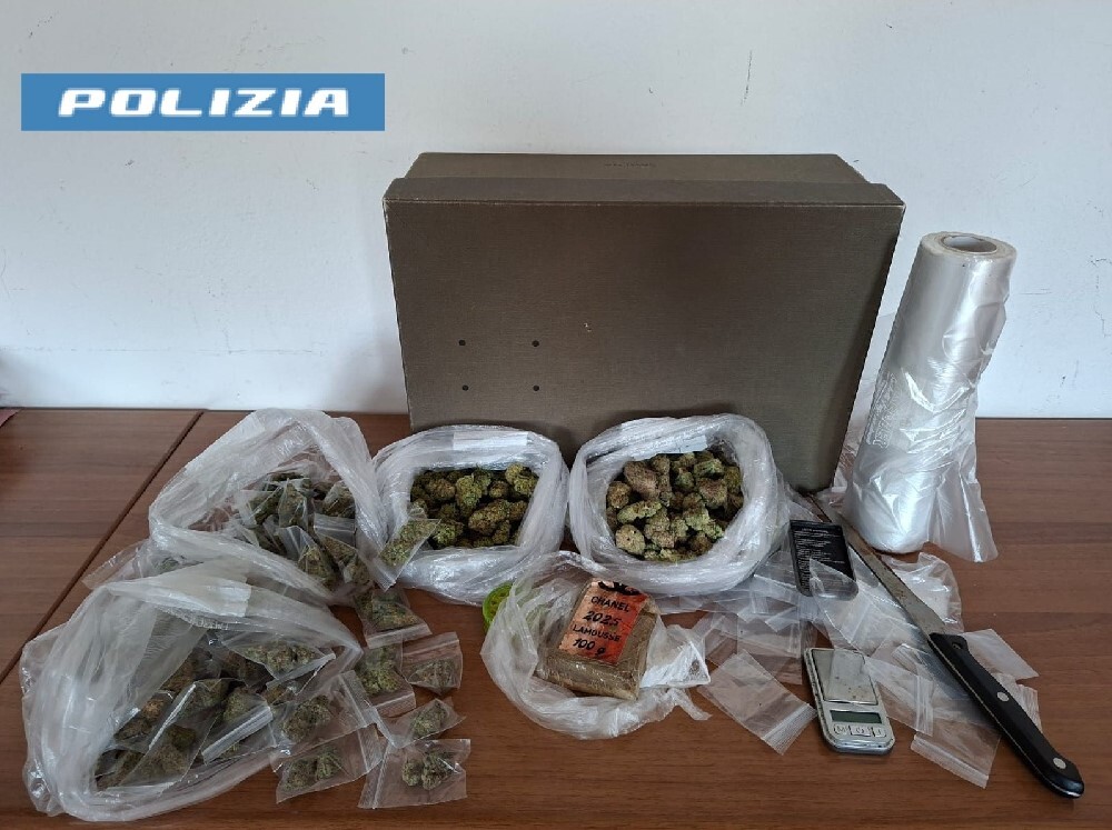 A San Giovanni-Barra, gli agenti del Commissariato con l’ausilio di un’unità cinofila antidroga dell’Ufficio Prevenzione Generale e Soccorso Pubblico, hanno controllato l’abitazione di un soggetto in via Alveo Artificiale dove hanno rinvenuto, ben occultati, 225 grammi circa di marijuana, 70 grammi circa di hashish, un bilancino di precisione, diverso materiale per il confezionamento della droga, un coltello con lama intrisa di sostanza stupefacente e 50 euro, suddivisi in banconote di diverso taglio.