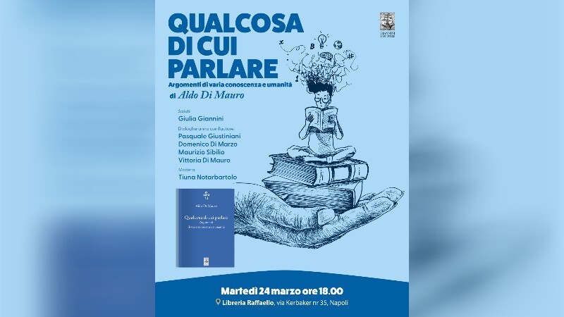 Ritorna in libreria lo scrittore Aldo Di Mauro, che presenterà il suo ultimo libro “Qualcosa di cui parlare”, martedì 24 marzo alle ore 18, presso la libreria Raffaello, via Kerbaker 35 Napoli. Il libro è stato pubblicato dalla Giannini Editore nella nota collana Sorsi. Dopo i saluti di Giulia Giannini, dialogheranno con l’autore: Pasquale Giustiniani, Domenico Di Marzo, Maurizio Sibilio, Vittoria Di Mauro. Modererà Tiuna Notarbartolo.
