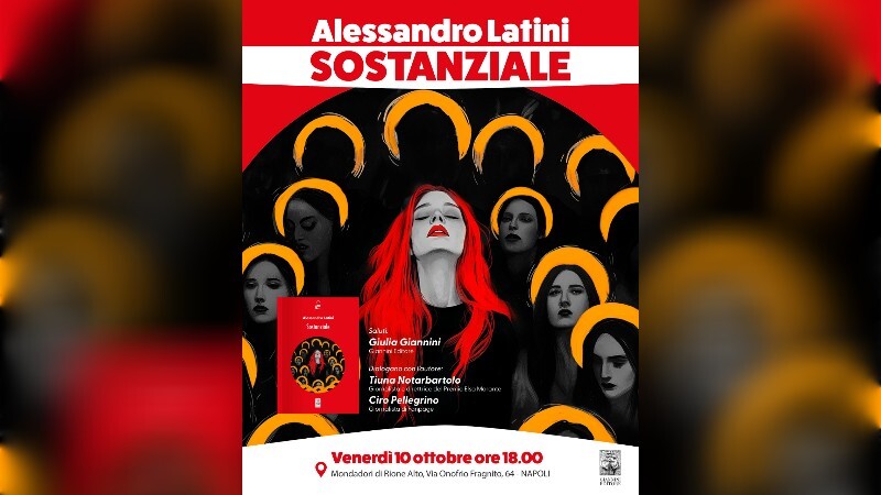 Prima presentazione napoletana per Alessandro Latini che presenterà presso la Mondadori di Rione Alto di Napoli (via Onfrio Fragnito 64) il suo libro “Sostanziale”, pubblicato dalla Giannini Editore nella collana La Cisterna. L’appuntamento è fissato per venerdì 10 ottobre alle ore 18. Dopo i saluti Giulia Giannini della Giannini Editore, dialogheranno con l’autore la giornalista Tiuna Notarbartolo e il giornalista di Fanpage Ciro Pellegrino.