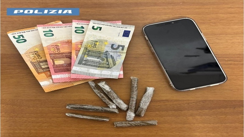 I poliziotti, insospettiti, hanno raggiunto e bloccato il 17enne, trovandolo in possesso di 7 involucri trasparenti contenenti circa 20 grammi di hashish e di 75 euro, suddivisi in banconote di vario taglio.