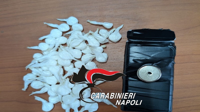 Nell’area comune di via Aspreno i cani antidroga del nucleo carabinieri cinofili di Sarno hanno trovato 67 dosi di cocaina che erano state nascoste in un contenitore per i rifiuti che però aveva un dispositivo magnetico per l’apertura.