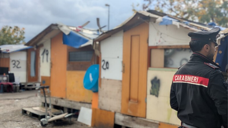 Controlli a tappeto dí carabinieri forestali e della compagnia Napoli Poggioreale nel campo Rom a Napoli di via Grimaldi.