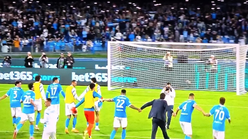 Il capitano Di Lorenzo si sofferma sulla prestazione della squadra e sull’episodio del rigore: "Ci speravo nella prestazione di stasera, sentivo un'aria diversa. Ci voleva una partita così dopo la brutta figura in Champions. Ero fiducioso perché ci conosciamo, siamo ripartiti nel modo giusto e siamo contenti.Avevamo preparato prevalentemente l'attacco alla profondità di Neres se arrivava all'uno contro uno con Acerbi, quando si staccava sono stati bravissimi i centrocampisti a inserirsi: sono molto bravi in questo e anche stasera abbiamo fatto due gol molto belli". Sul rigore dichiara:” Non ho ancora rivisto niente, sicuramente sono andato giù perché ho sentito il contatto in scivolata dietro. Dal campo ho sentito un contatto che non mi ha fatto restare in piedi. Non è una simulazione, è una valutazione dell'arbitro che ha deciso in questa maniera".