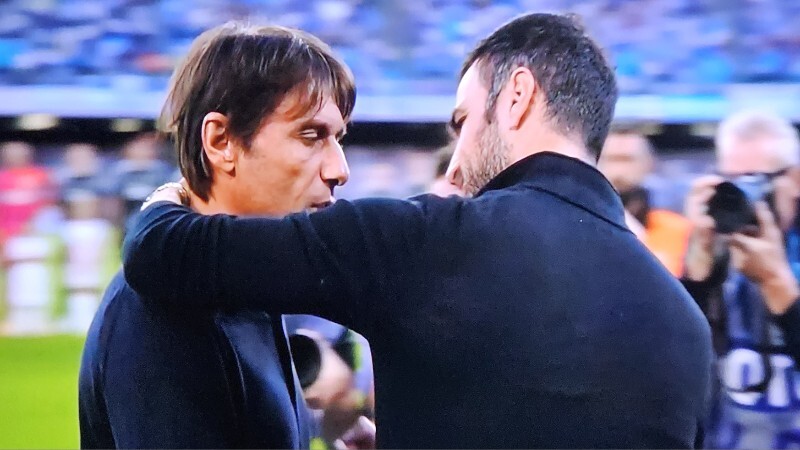 "Siamo partiti molto bene, esclama Antonio Conte a fine partita, perché abbiamo segnato subito. Forse la rete ci ha un pò appagati, ma abbiamo concesso solo tre tiri pericolosi fuori dall'area, sicuramente potevamo fare meglio. Nell'intervallo abbiamo anche cambiato qualcosa a livello tattico perché creavano troppa superiorità. Siamo riusciti poi a gestire la palla in maniera giusta e vincere la partita in maniera meritata, contro un'ottima squadra. Nel secondo tempo i ragazzi sono stati molto bravi, mi sono piaciuti. Abbiamo vinto più duelli. Nella prima frazione di gioco i lariani avevano prevalso per ben 22 volte contro le 8 del Napoli".