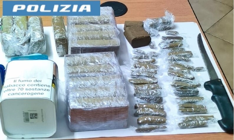 L’intuito investigativo degli operatori ha trovato positivo riscontro in quanto, all’interno dell’appartamento in uso all’uomo, gli agenti hanno rinvenuto 14 panetti di hashish per un peso complessivo pari a circa 1.5 kg, 43 involucri di hashish del peso di 200 grammi circa, un coltello con lama intrisa di sostanza stupefacente e 850 euro suddivisi in banconote di diverso taglio, chiaro provento dell’attività delittuosa.
