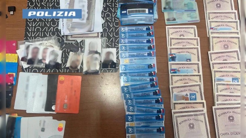 In particolare, gli agenti della Squadra Mobile, durante i servizi all’uopo predisposti, hanno controllato l’abitazione di un soggetto dove hanno rinvenuto, ben occultati in un cassetto del comodino, numerose carte d’identità senza foto tessera ed alcune riporanti la sua effige ma recanti generalità diverse, oltre a numerose tessere sanitarie di cui alcune palesemente false, numerose carte di debito/credito intestate a vari soggetti ed emesse da diversi istituti di credito, 2 computer portatili, 2 smartphone, un apparecchio POS ed alcune foto formato tessera ritraenti diversi soggetti.