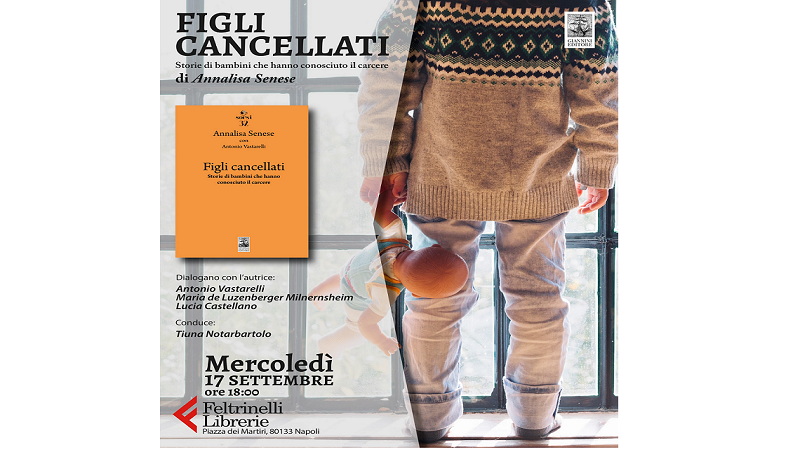 Con professionalità ed estrema sensibilità, Annalisa Senese dà voce ai figli e alle figlie dei detenuti nel libro “Figli cancellati”. Scritto con il giornalista Antonio Vastarelli, il libro è pubblicato dalla Giannini Editore nella collana Sorsi e sarà presentato per la prima volta mercoledì 17 settembre, alle ore 18 presso la libreria Feltrinelli di Piazza dei Martiri, Napoli. Dialogano con l’autrice: Antonio Vastarelli, Maria de Luzenberger Milnernsheim, Lucia Castellano.