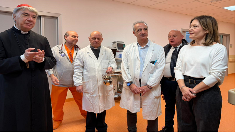 Nella serata di ieri, per la Giornata Mondiale del Malato, il Cardinale Don Mimmo Battaglia, arcivescovo di Napoli, ha visitato i reparti di Emergenza-Urgenza e di Cardiologia del CTO (Azienda Ospedaliera dei Colli) diretti, rispettivamente, dal dottor Mario Guarino e dal dottor Michele D’Alto. Accompagnato dal direttore generale Anna Iervolino, dal direttore sanitario di presidio Cosimo Maiorino e da Don Mario Dell’Aquila, il Cardinale Battaglia ha portato vicinanza e la sua benedizione a pazienti e operatori.