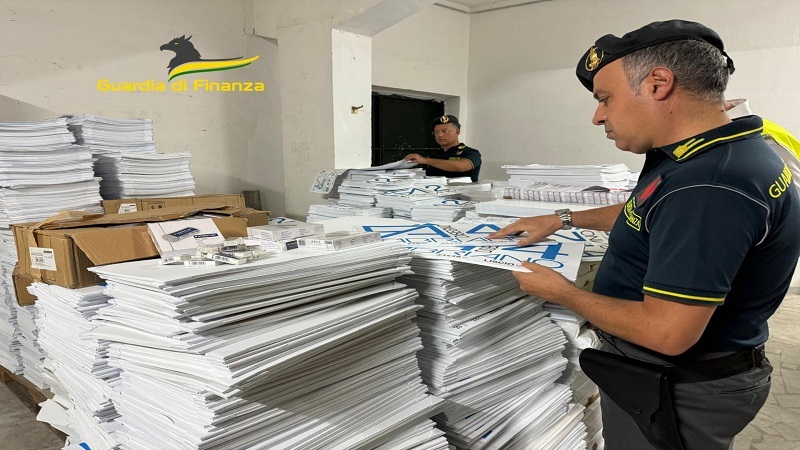 All’interno del laboratorio occulto, le Fiamme Gialle hanno sorpreso un soggetto intento al confezionamento del materiale e hanno così proceduto al sequestro del locale, di oltre 117.000 articoli di cartoleria e cancelleria contraffatti, di un macchinario da imballaggio, di alcuni rotoli di cellophane e di 2 banchi da lavoro. Tra i prodotti sequestrati, destinati a alimentare un mercato parallelo illecito, figurano quasi 70.000 album da disegno recanti marca “Fabriano” di vario formato e grammatura, nei quali, su ogni singolo foglio, era impresso, a secco, il noto marchio, nonché un migliaio di gomme per cancellare di marca “Staedtler”.