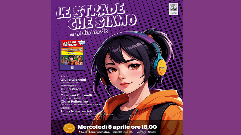 Si terrà presso la libreria Ubik Luce (Piazzetta Durante nr1, Napoli) la prima presentazione del libro “Le strade che siamo” di Giulia Verde, pubblicato dalla Giannini Editore nella collana Generazione Tempesta, vincitore del contest Pubblica col Morante. L’appuntamento è fissato per mercoledì 8 aprile alle ore 18. Dopo i saluti di Giulia Giannini della Giannini Editore, interverranno: l’autrice Giulia VerdeGiovanni Chianelli giornalista de Il Mattino e Clara Pellegrino docente e presidente Fnism sezione Napoli. Modererà Tiuna Notarbartolo giornalista e direttrice del Premio Elsa Morante.