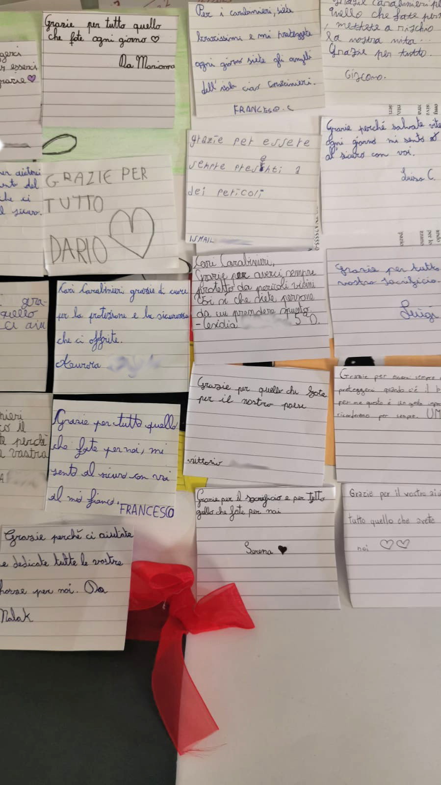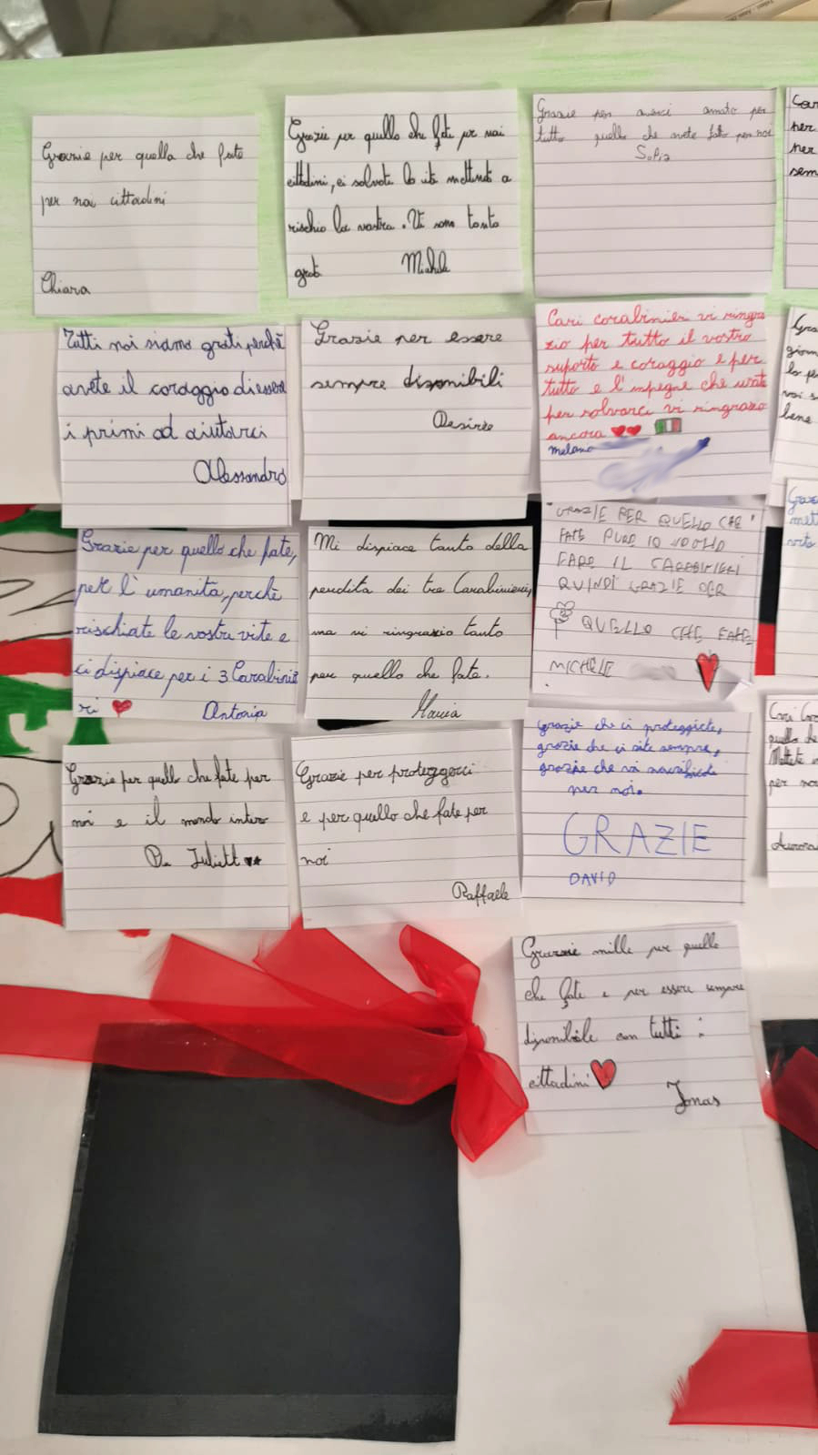 “Voi si che siete persone da cui prendere spunto”, scrive una bimba. Un’altra aggiunge dedica piccoli cuoricini rossi, disegnandoli con una bandiera tricolore.