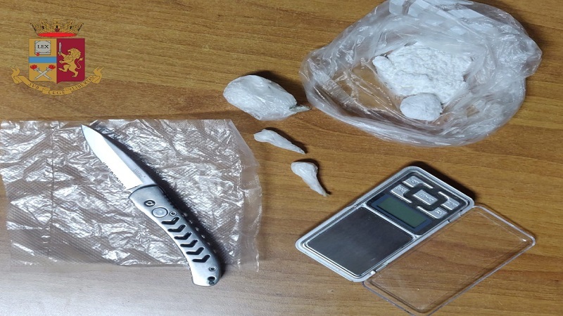 I poliziotti hanno inseguito l’auto fino a via Provinciale Lacco Fango a Lacco Ameno dove hanno identificato e controllato i due trovando l’uomo in possesso di un coltello a serramanico con la lama della lunghezza di 8 cm e di una dose di cocaina del peso di circa 1,4 grammi; inoltre, presso l’abitazione della coppia, hanno rinvenuto in un armadio altri 3 involucri contenenti complessivamente circa 34 grammi della stessa sostanza, un bilancino di precisione e diverso materiale per il confezionamento della droga.