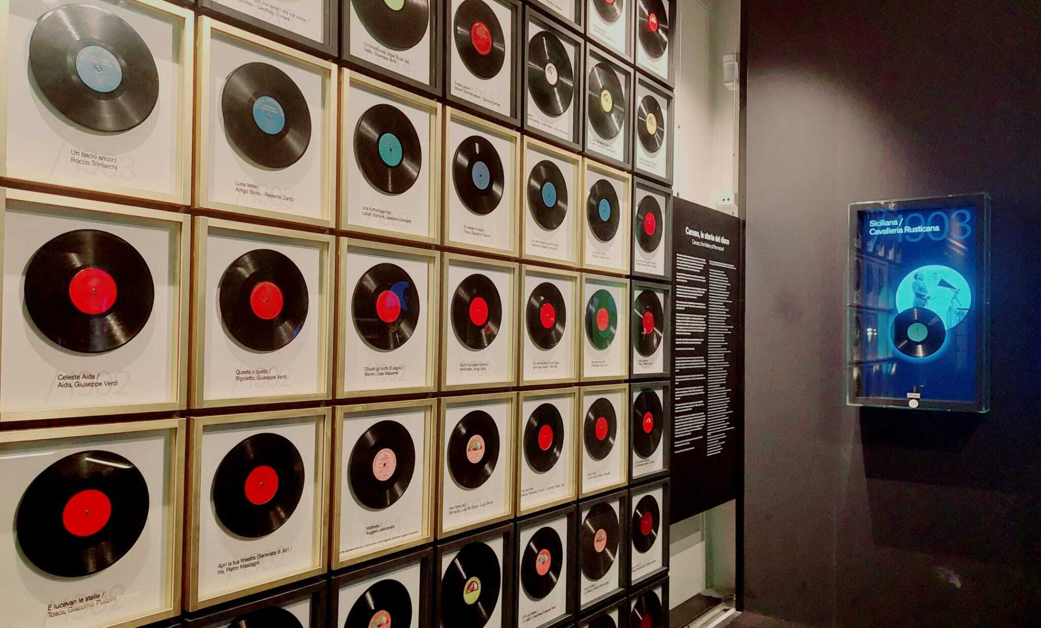 Nella nuova sezione del museo, che riapre il 1° agosto dopo  3 giorni  di  riallestimento, è stata proposta una selezione in cui i dischi più significativi sono evidenziati in cornice dorata: le prime lacche dell’11 aprile 1902 e i rarissimi dischi Zonofono del 19 aprile 1903.