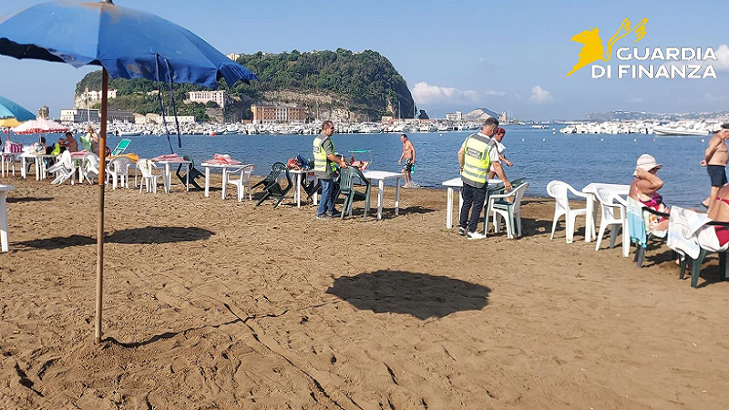 Ieri, i militari del Reparto Operativo Aeronavale e del Comando Provinciale della Guardia di Finanza, congiuntamente a personale della Capitaneria di porto - Guardia Costiera di Napoli e dei Carabinieri, nel corso di un servizio di polizia demaniale finalizzato al controllo del territorio e al contrasto dell’occupazione abusiva del demanio marittimo, sono intervenuti in un’area di 10.000 mq in località Coroglio (Nisida - NA), sulla quale era stato allestito abusivamente uno stabilimento balneare.