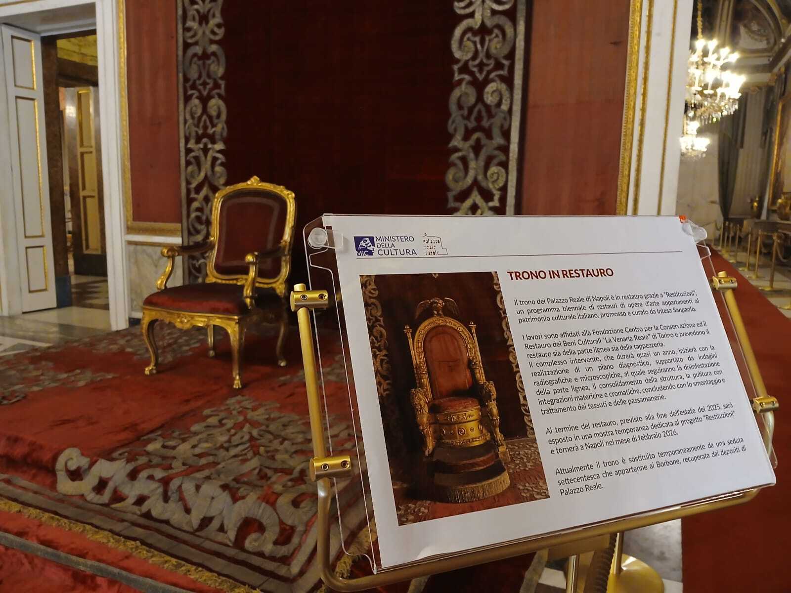 Intanto proseguono i lavori di pulitura e restauro dello Scalone d’Onore, iniziati nel mese di luglio, che si concluderanno a ottobre e saranno temporaneamente sospesi in occasione del G7 della Cultura in programma la prossima settimana. L’intervento di pulitura delle macchie sugli scalini è fondamentale e risolutivo per l’attenuazione delle chiazze di ruggine ossidate. Il lavoro è affidato al Consorzio CO.MA.BER ed eseguito dalla ditta Officine Marmi Italia.