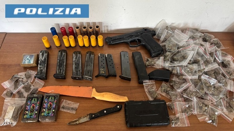 Nel pomeriggio di ieri, gli agenti del Commissariato San Giovanni-Barra, nell’ambito dei servizi all’uopo predisposti, hanno effettuato un controllo presso uno stabile in stato di abbandono sito in via Villa San Giovanni dove hanno rinvenuto e sequestrato, ad opera di ignoti, 84 bustine di marijuana del peso complessivo di circa 200 grammi, 12 involucri di hashish del peso complessivo di circa 300 grammi, un bilancino di precisione, 2 coltelli, una pistola replica marca Bruni mod. 92 completa di caricatore, 8 caricatori per vari tipi di armi, 15 cartucce per arma lunga cal. 12 e diverso materiale per il confezionamento della droga.