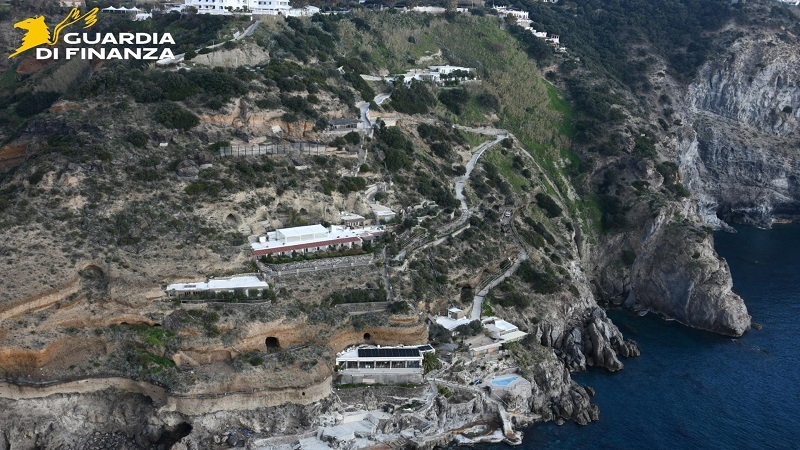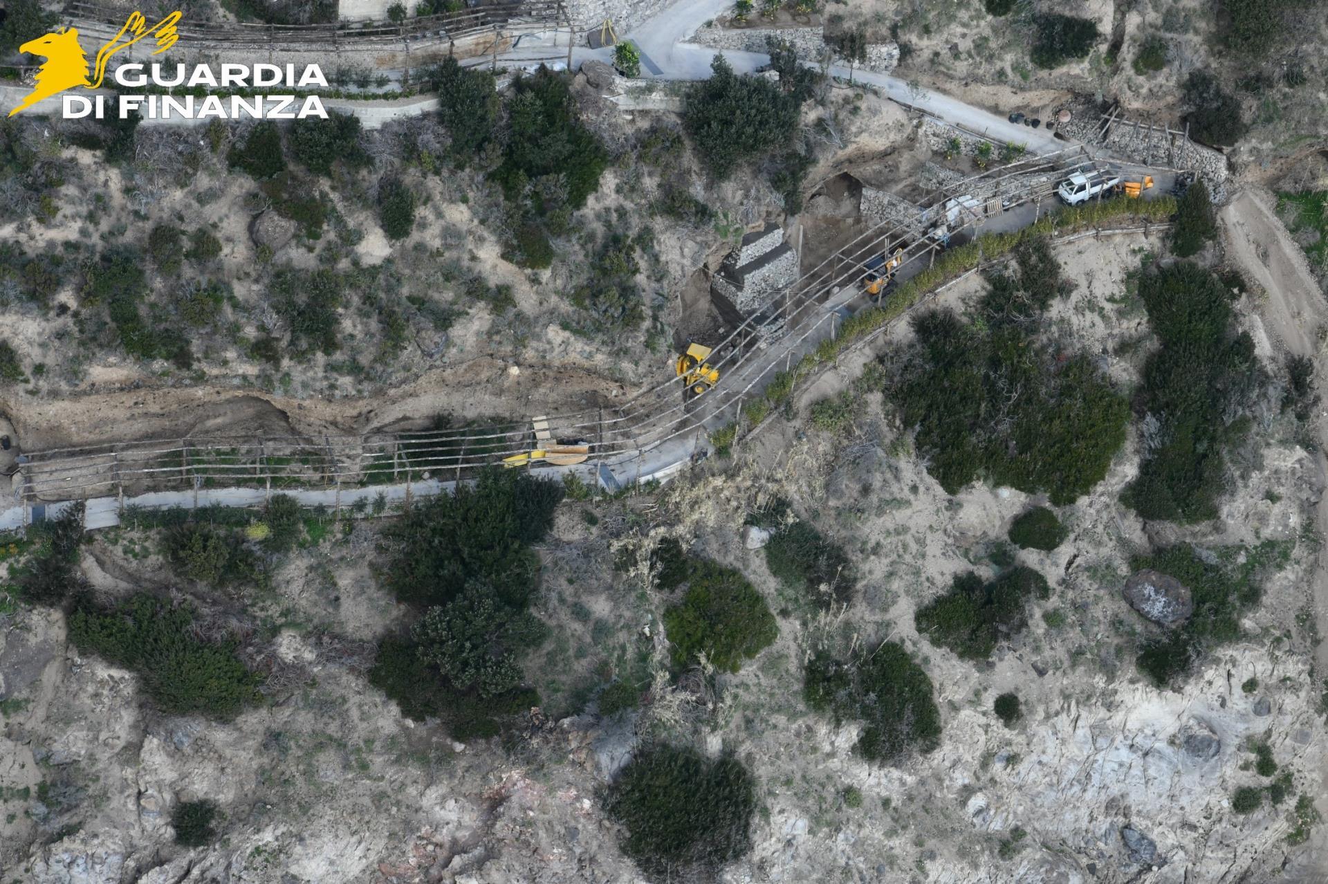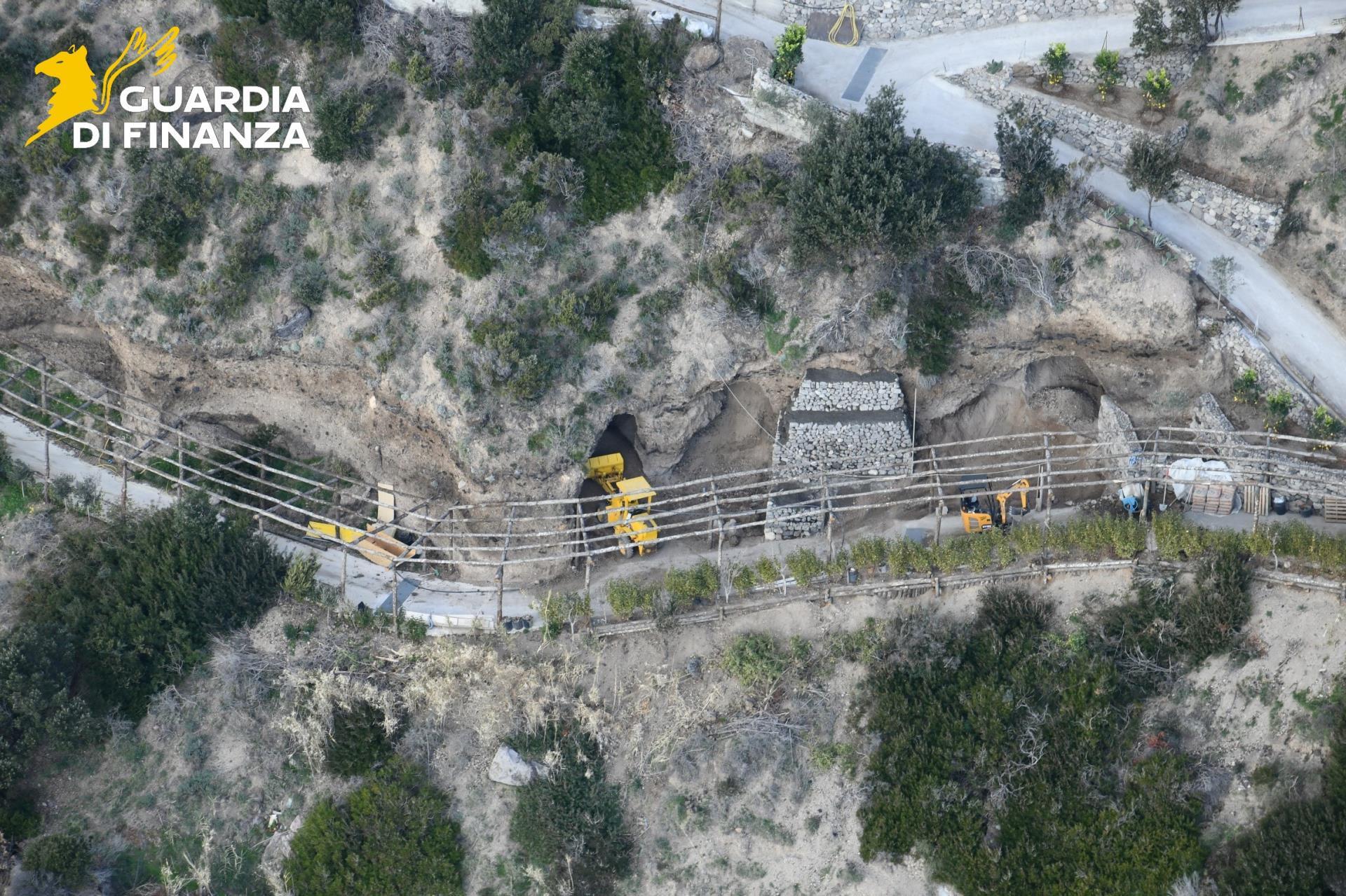 Le attività investigative mediante telerilevamento aereo ed approfondite analisi documentali hanno permesso di accertare ulteriori interventi edilizi non autorizzati, funzionali a una trasformazione urbanistica del sito, sottoposto a massimo rischio di frana, in protezione integrale di natura paesaggistica, con vincolo di assoluta inedificabilità, in totale spregio di ogni norma di natura urbanistica, ambientale, idrogeologica ed in assenza delle necessarie autorizzazioni previste, con conseguente pericolo anche per la pubblica incolumità. Le ipotesi di reato ascritte scaturiscono anche da approfondimenti tecnici condotti da un consulente tecnico esperto di materia urbanistica e da una professoressa di geologia ambientale della Università Federico II di Napoli, che confermavano l'esecuzione da parte degli indagati di profondi e pericolosi scavi nella roccia naturale viva del costone di Forio d'ischia, posti in essere senza alcuna certificazione, fino a creare nuove volumetrie, cunicoli, tracciati, terrazzamenti, piscine scavate sulla piattaforma tufacea a livello del mare, grotte artificiali, con definitivo stravolgimento dell'orografia del territorio e modifica del naturale assetto geologico dei rilievi costieri. I rifiuti di tali lavorazioni venivano direttamente sversati in falesia, fino a raggiungere lo specchio acqueo prospicente, tanto da creare veri e propri cumuli subacquei, evidenziati da specifici rilievi eseguiti dai Sommozzatori del Reparto Operativo Aeronavale della Guardia di Finanza di Napoli, cagionando anche pericolo per la biodiversità.