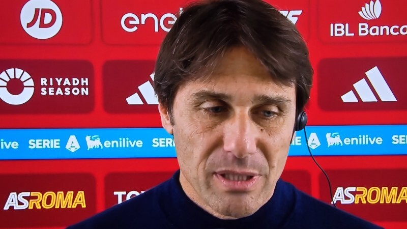 Antonio Conte in conferenza stampa al termine della partita mastica amaro per il pareggio arrivato nei minuti di recupero: "Sicuramente sul gol potevamo fare molto meglio, perché loro hanno fatto una fotocopia uguale con l'Eintracht e avevamo mostrato la situazione 10-12 volte in video. Poi ci sta, negli ultimi minuti non avevano niente da perdere, inevitabile che stai vincendo e ti butti in avanti e, vuoi o non vuoi, ti possono passare. Però c'è amarezza per il modo in cui abbiamo concesso il gol. Detto questo poi uno ragiona e va messo in conto che a Roma si possa pareggiare contro chi aveva fatto sette vittorie consecutive con 23 gol e 3 subiti con ottimi giocatori. Potevamo ottenere l'ottava vittoria, peccato, ma è capitato anche un'altra volta a nostro favore col Parma, ribaltando il risultato. Il campionato è dare e avere e le cose si equilibrano, ma nulla toglie ai ragazzi. Mi soddisfa vedere i giocatori della Roma esultare per il pareggio a testimonianza che siamo tornati ad essere temuti e rispettati. Dico ai ragazzi sempre che bisogna stare attenti al dettaglio, che a volte sposta le partite. Oggi potevamo fare molto meglio sul gol, era una situazione accaduta giovedì ed è un peccato. Nulla toglie a quello che stiamo facendo, dobbiamo continuare a lavorare. I ragazzi mi danno soddisfazione e quindi continuiamo.