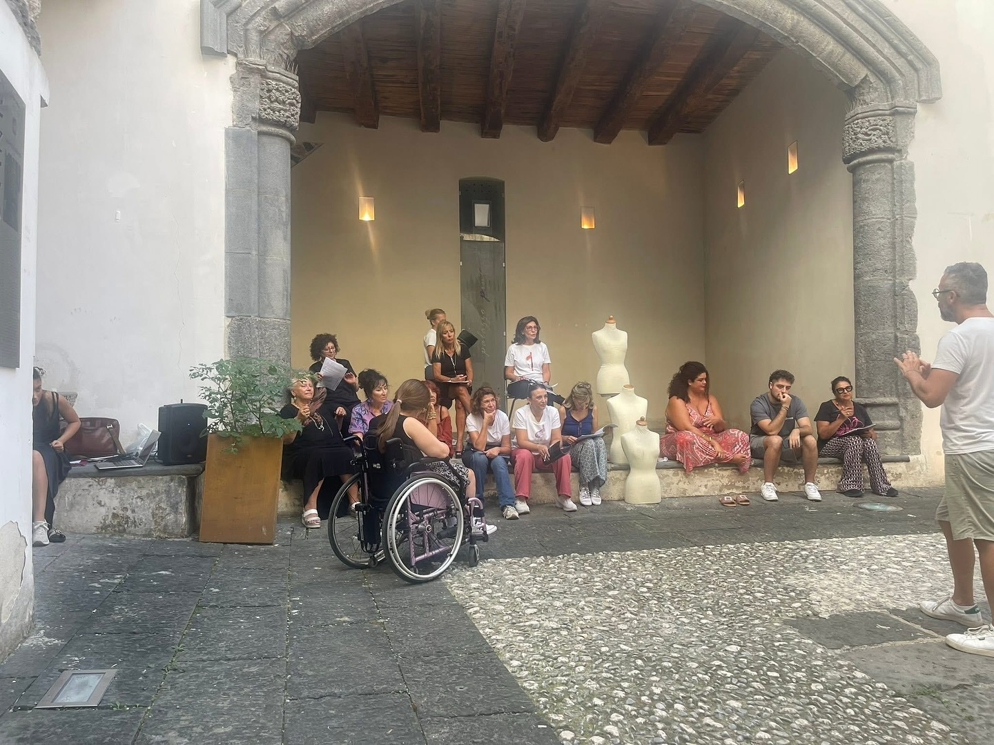 Uno spazio suggestivo, l’Arco Catalano, gioiello architettonico del XV secolo, nel cuore del centro storico di Salerno. In scena Cassandra, la sacerdotessa di Apollo, nell’interpretazione straordinaria dell’attrice Tina Agrippino e con lei gli attori-allievi dello stage intensivo di Scena Teatro. Un’immagine potente che prende vita attraverso la regia acuta e visionaria di Antonello De Rosa, con la direzione organizzativa di Pasquale Petrosino.