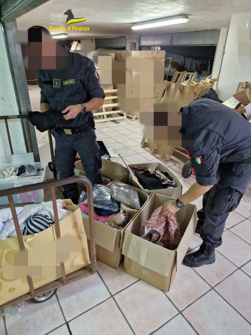 Pertanto, i militari si recavano presso il magazzino della società riconducibile al venditore, all'interno del quale notavano una moltitudine di articoli similari nonché una macchina per la copiatura a caldo di loghi e migliaia di etichette recanti griffe tra cui "Moncler", "Liu Jo", "Twin Set", "Moschino" e "Ralph Lauren", aspetto che faceva rinforzare l'ipotesi della fabbricazione di beni artefatti.