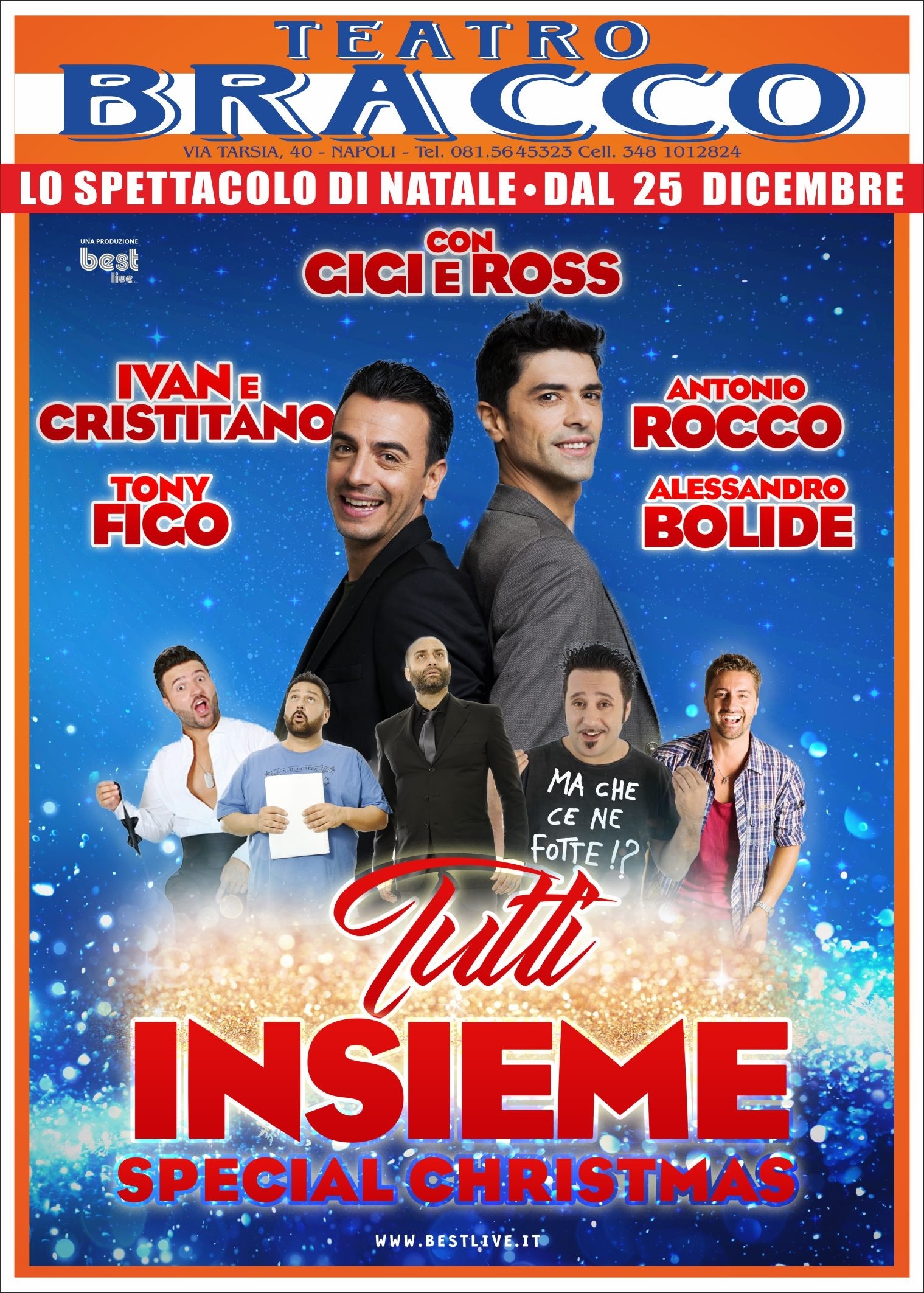 Si tratta di “Tutti insieme-Special Christmas”, uno spettacolo di cabaret prodotto dalla Best live e ambientato proprio nel periodo di natale: in cui risaputamente tutti sono più buoni, anche se la fantomatica bontà di Gigi e Ross sarà messa duramente alla prova dalle incursioni di Alessandro bolide, Ivan e Cristiano, Tony Figo, reduci dai successi sul piccolo schermo dei loro divertenti e popolari personaggi.
