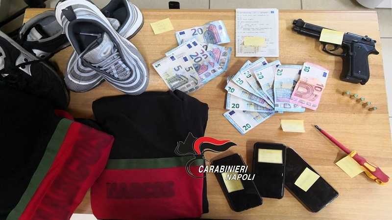 La notte del 18 giugno due uomini hanno rapinato un bar su via Ripuaria portando via i 380 euro dell’incasso, gli smartphone del titolare e di due clienti e la collanina d’oro di uno di loro. I due complici, identificati poi in Pasquale Conte, 31enne e Armando Di Biase, 33enne, entrambi di Giugliano e già noti alle forze dell’ordine, sono entrati nel bar con i volti coperti da passamontagna, e,armati di pistola e cacciavite, hanno commesso la rapina e si sono allontanati a bordo di una utilitaria grigia con un faro rotto. I Carabinieri della stazione di Varcaturo sono arrivati nel bar teatro della rapina dopo pochi minuti e si sono subito messi alla ricerca dei due sulla base delle descrizioni raccolte, del particolare del faro rotto e del segnale che inviava il sistema di geolocalizzazione dell’autovettura su cui i rapinatori erano fuggiti (auto per altro intestata a Pasquale Conte). I militari hanno localizzato i due nel comune di Mugnano e li hanno fermati mentre consegnavano del denaro a un uomo. Conte e Di Biase sono stati bloccati e perquisiti. Il primo aveva addosso 240 euro, verosimilmente parte del provento della rapina. A casa, invece, nascondeva una pistola scenica di metallo privata del tappo rosso e con 5 colpi a salve nel caricatore ed i vestiti indossati poco prima durante la rapina (un pantalone di tuta, 2 felpe nere e 2 paia di scarpe sportive). I Carabinieri hanno controllato anche l’interno della loro auto riuscendo a recuperare uno degli smartphone rapinati poco prima e un cacciavite giallo e nero. L’utilitaria è stata posta sotto sequestro. Gli arrestati sono stati tradotti in carcere.