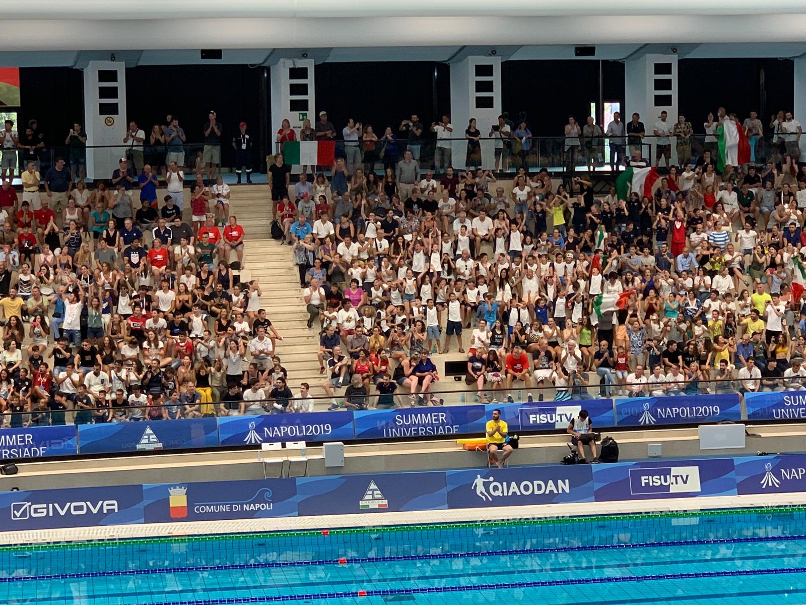 Nelle gare del pomeriggio è subito grande delusione alla piscina Scandone; Alisia Tettamanzi, miglior tempo nelle semifinali degli 800 stile libero femminili, ha chiuso solo al sesto posto. Mai veramente in gara, partita malissimo, la Tettamanzi è arrivata fino alla quarta posizione per poi cedere nel finale e chiudere con il tempo di 8:42.20. Oro alla giapponese Kobori (8:34.30), argento alla russa Irina Prikhodko (8:37.36) e bronzo per l’altra nipponica Sato (8:38.19). Non è andata meglio nei 200 stile libero femminile; Lidia Caponi, infatti, ha chiuso solo al quarto posto (1:59.24), ad un soffio dalla russa Baklakova (1:59.00). Oro ed argento alle statunitensi De Loof (1:57.62) e Madden (1:58.31). Quinta l’altra italiana in gara, Alice Scarabelli (2:00.51). Il delirio, però, è stato solo rimandato, perché la Scandone ha avuto la possibilità di esplodere poco dopo le 19. La protagonista è stata Silvia Scalia (già bronzo nei 100 dorso); due pinne ed un’elica al posto dei piedi ed un super tempo che è valso l’oro, unica a scendere sotto il 28 (27.92).