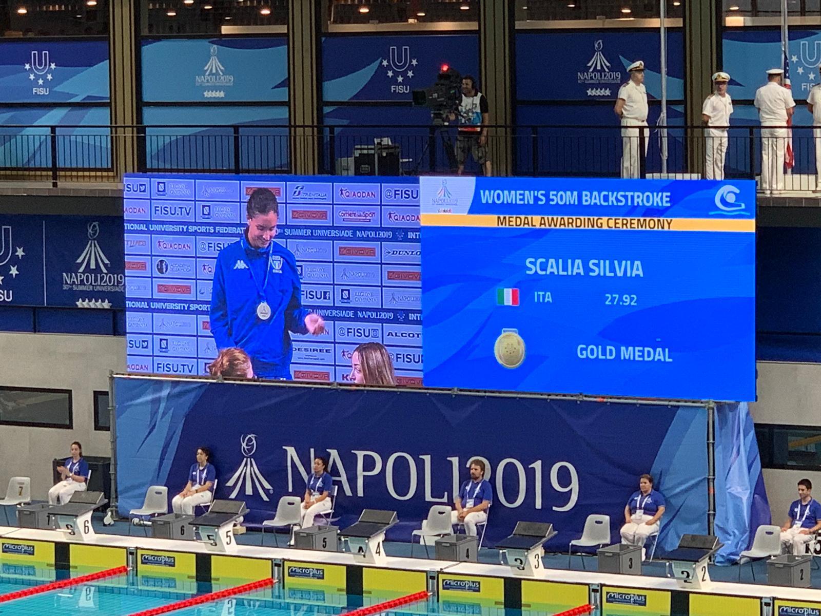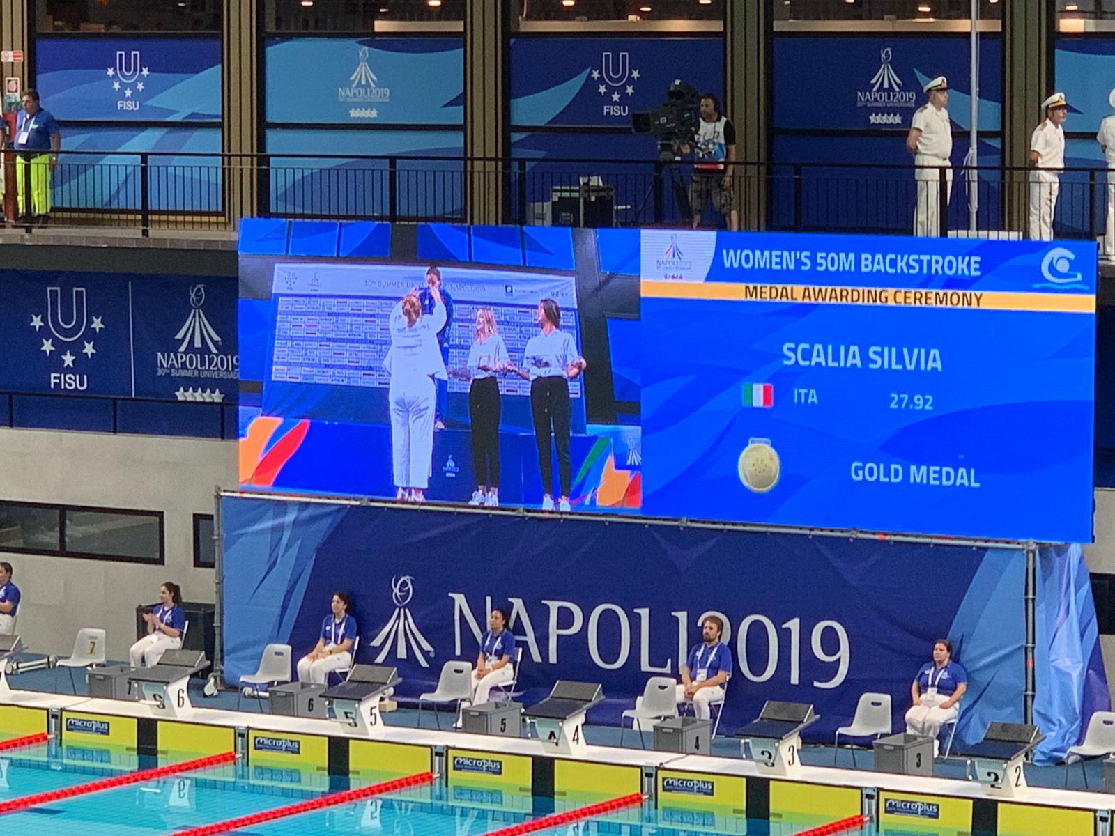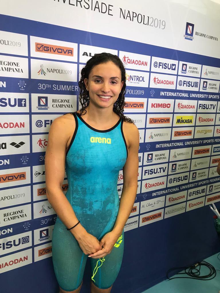 “Volevo assolutamente vincere oggi – ci ha raccontato in mixed zone - a prescindere dal tempo. È arrivato l’oro e sono molto soddisfatta. La Scandone e Napoli tutta per me? Il tifo ha influito tantissimo; giocare in casa è stato un mio vantaggio. Molto bello ed entusiasmante. Non so quando mi ricapiterà avere il tifo tutto per me, dalla mia parte e quindi me lo sono goduto tantissimo, dall’inizio alla fine. Record italiano sfiorato? Sono contenta; non pensavo di riuscire a chiudere sotto il 28. Sono contentissima, perché è un buon feedback in vista del Mondiale. Adesso riprenderò la preparazione, poi dritto fino ai prossimi appuntamenti che saranno i Mondiali in cui spero di poter gareggiare nei 50 e 100 dorso ed almeno in una delle due staffette al mattino. Tokyo? (quasi con aria sorpresa) Beh sì (ci sorride, ndi); ci sono altre tappe in mezzo e quindi un po’ alla volta. Ma l’obiettivo è sicuramente quello per l’anno prossimo. Sensazioni per il mio primo oro in una manifestazione (escluso i Giochi del Mediterraneo, ndi)? È proprio bello, soprattutto perché era il mio obiettivo ma eravamo tutte là e la sfida è stata equilibrata. Non ho ancora realizzato bene, però, non posso che essere soddisfatta”.