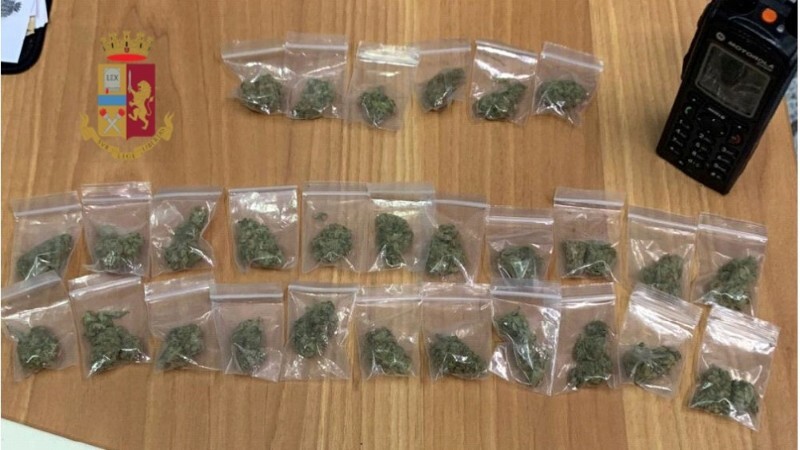 I poliziotti lì hanno controllati trovando uno di essi in possesso di 22 involucri contenenti 23 grammi circa di marijuana e 20 euro, mentre indosso agli altri due, 7 grammi circa della stessa sostanza.