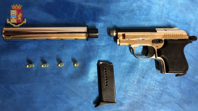 I poliziotti lo hanno controllato e trovato in possesso di una pistola priva di matricola con 4 cartucce calibro 6,35 e un silenziatore.