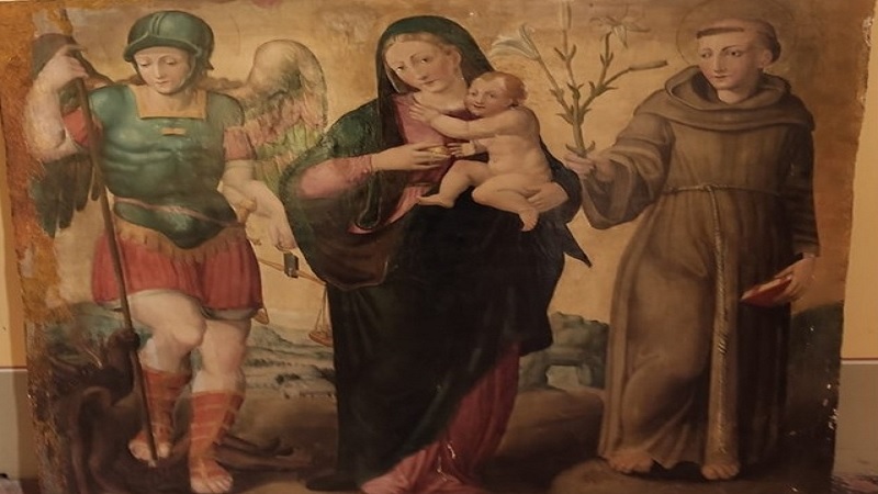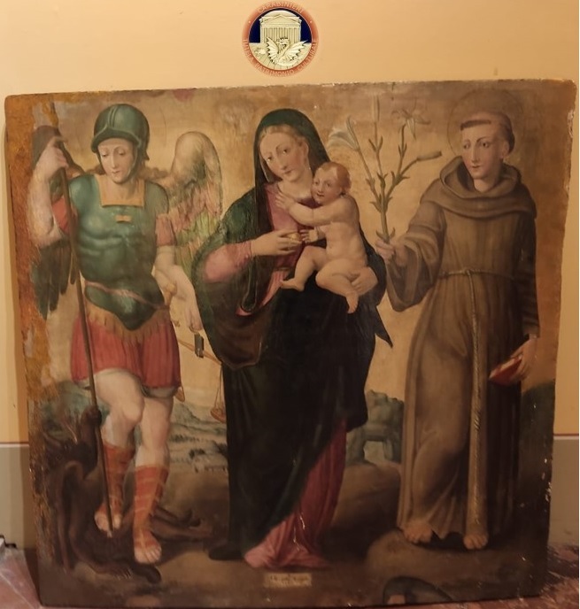Si tratta di una pala d’altare a olio su tavola, delle dimensioni di 106x110 cm e risalente al 1555, asportata il 28 aprile 1979 dalla Chiesa di Santa Maria del Toro di Vico Equense. L’opera, messa all’incanto da una nota casa d’aste, è stata individuata e recuperata dal Nucleo TPC di Napoli, le cui attività investigative sono state coordinate dalla Procura della Repubblica di Firenze, nell’ambito di una specifica attività di contrasto alla commercializzazione di opere d’arte rubate.