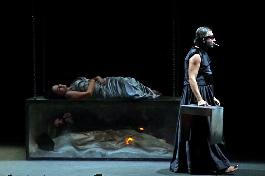 Molte sono state le domande che hanno mosso questa particolare riscrittura. Cosa accadrebbe, se crollasse la struttura che determina la tragedia classica greca? Se Apollo fosse troppa vita/dramma, e Tanato troppa morte/tragedia? Se Alcesti, prima d’essere un’eroina classica, fosse una moglie ormai stanca e affetta dal “morbo” dell’abitudine?