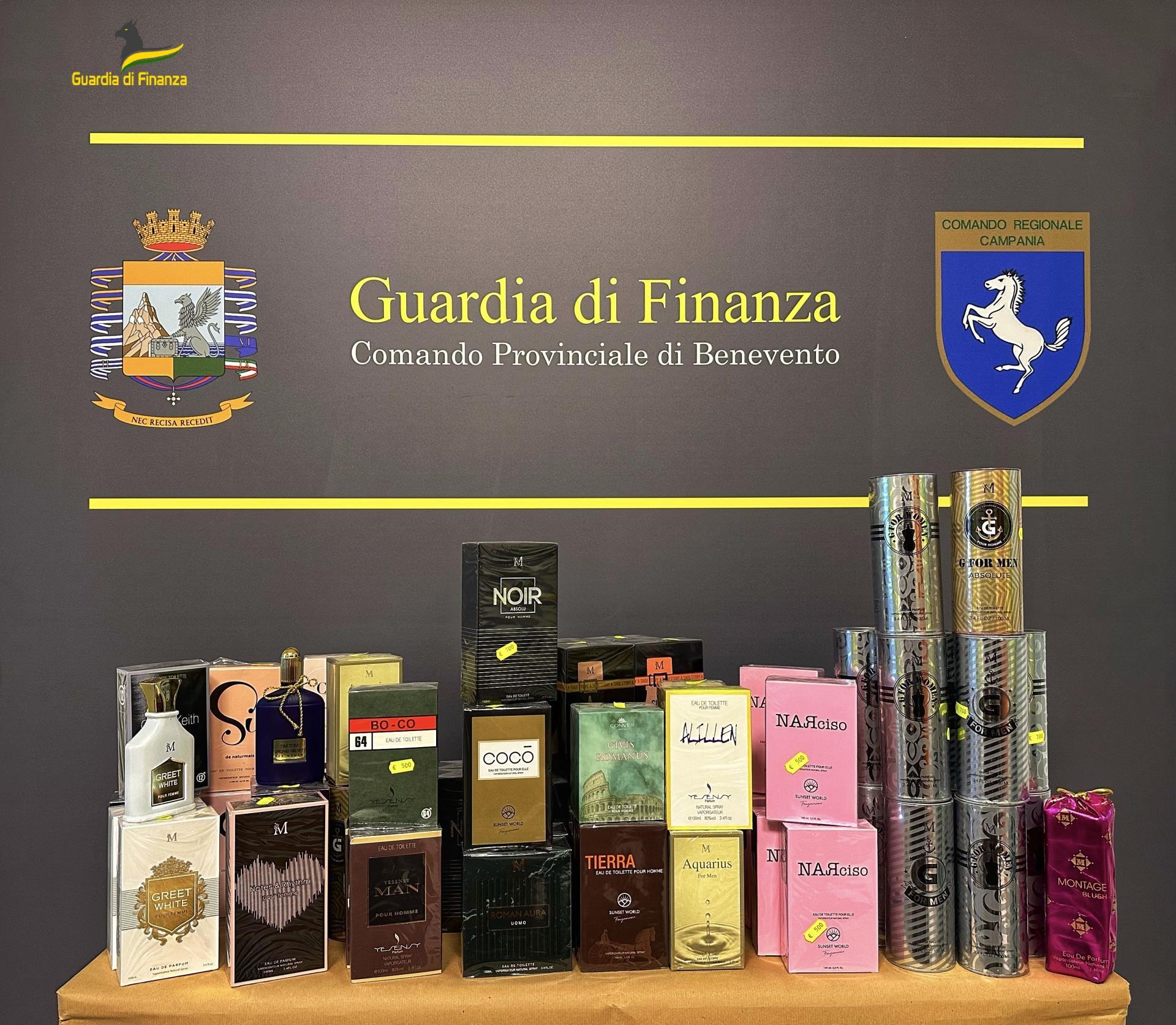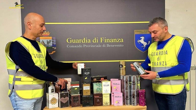 Nei giorni scorsi, nell’ambito dei servizi di repressione della commercializzazione di prodotti con segni falsi, svolti a tutela dei consumatori e dei commercianti onesti, i finanzieri della Sezione Mobile del Nucleo di Polizia Economico-Finanziaria di Benevento, nel Comune di Airola hanno individuato un’attività commerciale gestita da un soggetto di etnia cinese, che esponeva per la vendita confezioni di profumo da 100 ml contraffatti, riportanti marchi e loghi di note case produttrici italiane ed europee quali Creed – Aventus, Jean Paul Gaultier, Tom Ford Velvet Orchid, Hermes, Bulgari, Cocò Chanel, Giorgio Armani, Calvin Klein e tanti altri.