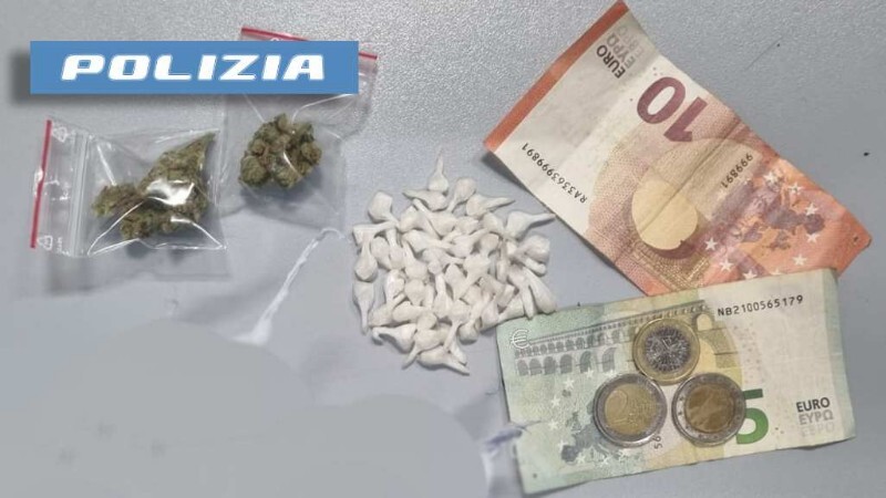 I poliziotti, prontamente intervenuti per interrompere l’iter criminoso, hanno bloccato il prevenuto trovandolo in possesso 2 involucri di marijuana dal peso di 4 grammi, 2 involucri di cocaina e 20 euro; inoltre, gli operatori hanno trovato dietro la porta d’ingresso dello stabile altri 41 involucri di cocaina per un peso complessivo di 8 grammi.