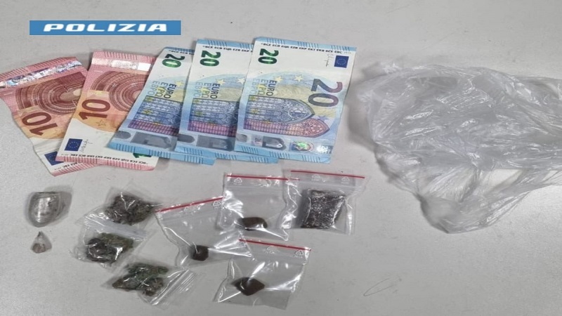 I poliziotti, tempestivamente intervenuti per interrompere l’iter criminoso, hanno raggiunto il prevenuto e, non senza difficoltà e dopo una colluttazione, lo hanno bloccato trovandolo in possesso di 4 bustine di marijuana del peso di circa 4 grammi, 4 involcucri di hashish del peso di 11 grammi, 2 involucri di eroina di circa 11 grammi e 80 euro.