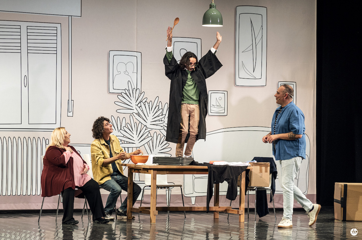 Una commedia travolgente che racconta vizi, virtù e contraddizioni di un Paese che, proprio come un condominio, sembra diviso su tutto ma che alla fine trova sempre il modo di “stare insieme”. In un intreccio continuo di situazioni, momenti di pura improvvisazione, la scena si allarga fino a confondersi con la realtà: il teatro si fonde con la vita vera, e il pubblico si ritrova senza volerlo a partecipare alla riunione di una grande e divertentissima “famiglia allargata”, tipica del sud!